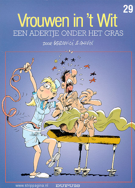 | Info: | Een verblijf in het ziekenhuis is met alleen een fysieke lijdensweg. Ook moreel krijg je vaak een paar klappen. Daarom hebben de auteurs voor hun fans in dit negenentwintigste deel een paar belangrijke adviezen: denk twee keer na voor je je laat opereren, zorg ervoor dat je dochter onder geen enkel voorwendsel in de verpleegkunde gaat, luister niet naar alle wilde verhalen die verpleegsters verzinnen en ga nooit samenwonen met een 'vrouw in het wit', Binnen de kortste keren zit je ijskast vol met donororganen... En als je een verpleegster met handen en voeten iets moet uitleggen... Zorg er dan voor dat je alles weer terugkrijgt. De tandem Cauvin-Bercovici haalt in "Vrouwen in 't wit" het volledige medisch corps door de scanner. Het resultaat is een hilarisch beeld van de ziekenhuiswereld met een wachtlijst die zich beperkt tot vierenveertig pagina's. Van facturen tot fracturen worden alle aspecten van de ziekenzorg met een brede glimlach op de hak genomen. De reeks, ontzettend populair bij artsen en medisch personeel, is een van de pijlers uit de Dupuis-catalogus. Ook in de boekhandel raken steeds weer nieuwe patiënten verslaafd aan deze wonderlijke lachtherapie. |