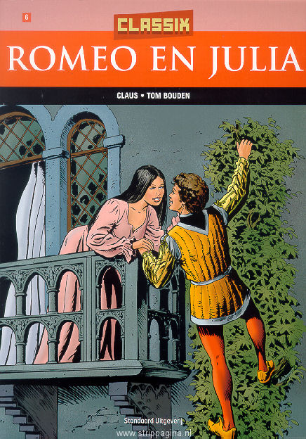 | Info: | Romeo en Julia behoren tot twee vijandige familieclans in het middeleeuwse Verona, de Montagues en de Capulets. Wanneer de twee tieners elkaar ontmoeten, is het liefde op het eerste gezicht. Zij sluiten een geheim huwelijk, maar hun liefde is gedoemd een tragisch einde te hebben. Dat 'Romeo en Julia' bijna synoniem is voor 'romantische liefde', hangt natuurlijk samen met de immense populariteit van Shakespeares toneelstuk, maar nog meer met het succes van enkele recente films. En nu is er dus het beeldverhaal ... Tom Bouden zorgde voor het scenario en Claus mocht de mooie Romeo en Julia vormgeven. |