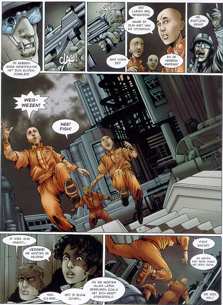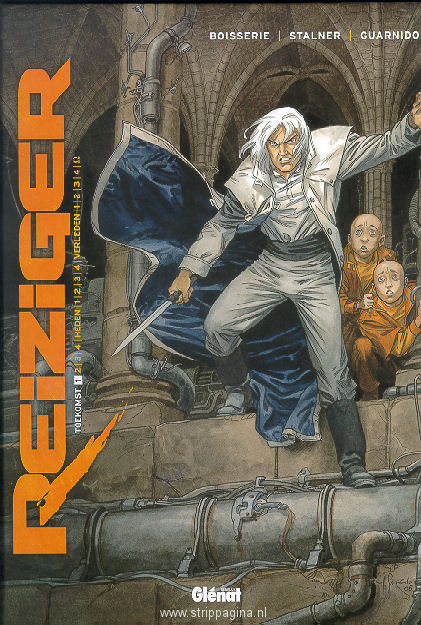 | Info: | REIZIGER is een originele reeks in 12+1 delen die rond de twee "dirigenten", Stalner en Boisserie, een groep van talentvolle tekenaars vergadert. Met een snel verschijningsritme (het geheel zal tussen 2007 en 2011 gepubliceerd worden) zullen de strips getekend worden door Guarnido, Bourgne, Lambert, Siro, Liberge en Rollin. REIZIGER bestaat uit drie cyclussen rond het hoofpersonage, Reiziger, die zich in verschillende tijdstippen verplaatst : het verleden, het heden en de toekomst. In de cyclus van de toekomst speelt het verhaal zich af in een futuristisch en vervallen Parijs waar de maatschappij in handen is van een grote financiële onderneming. Reiziger zal zijn groot vermogen ontdekken en leren in de tijd en in de ruimte te reizen... De toekomst is enkel het begin van dit grote avontuur. Een briljante thriller die de lezer van het begin tot het einde in spanning houdt ! |