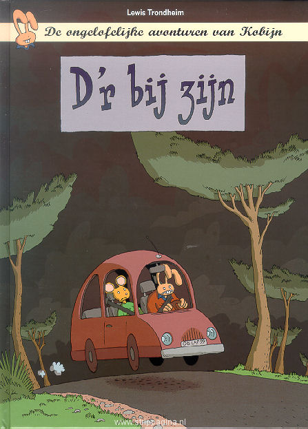 | Info: | Nadia is d'r bij: boven op het nieuws en Kobijn gaat met haar mee. Ze reist af naar het platteland om een boer te interviewen uit wiens akker een man kroop die eigenlijk, dertig jaar geleden, aan flarden was geschoten. Maar was deze boer d'r wel echt bij of verzint hij maar wat? En Lewis Trondheim zou Lewis Trondheim niet zijn als hij de gelegenheid niet zou aangrijpen om wat langer stil te staan bij deze filosofische vraag: wat betekent dat nou precies, ergens bij zijn? De tekenaar en schrijver hecht eraan te vermelden dat hij dit deel van Kobijn speciaal aanbeveelt bij mensen die van rode auto's houden. |