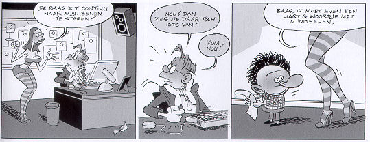 | Info: | Zo'n 67 stroken lang vormen de lieftallige, maar ietwat ordinaire Ellen, zenuwpees Diederik en hoofdredacteur 'baas' de redactie van Veronica Magazine en maakten zij de strippagina's onveilig met leuke, flauwe, lollig bedoelde, vieze, slaapverwekkende, messcherpe en buitengewoon kinderachtige mopjes. En dit zijn ze (bijna) allemaal! |