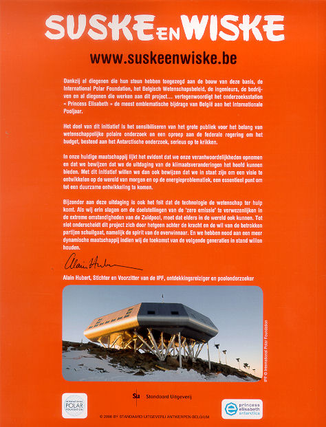| Info: | Achterkant van het album bevat een verhaal over de International Polar Foundation. Wanneer de autoriteiten alle contact met het Belgische poolstation op Antarctica verliezen, stelt professor Barabasmet Lambik en Jeromter plaatse een onderzoek in. Het station blijkt verlaten en er zijn sporen van gevechten. Na een paar dagen wordt de ernst van de situatie duidelijk. Vreemde, monsterachtige wezens belegeren het poolstation. Ondertussen hebben onze vrienden in een ijsgrot onder de poolkapeen lichtgevende meteoor ontdekt. Deze blijkt een ingrijpend effect te hebben op iedereen die ermee in contact komt. De gevolgen zijn dramatisch... |