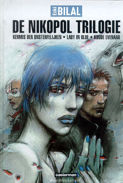 | Info: | In maart 2023 heerst er opschudding in Parijs: aan de vooravond van nieuwe schijnverkiezingen die het fascistische bewind heeft uitgeschreven, verschijnt er een piramidevormig ruimteschip boven de Franse hoofdstad. Zo begint de trilogie rond de verzetsheld-tegen-wil-endank Alcide Nikopol en de opstandige Egyptisch god Horus, die dankbaar gebruikmaakt van Nikopols stoffelijk omhulsel. Bevat de verhalen: - Kermis der onsterfelijken - Lady in blue - Koude evenaar |