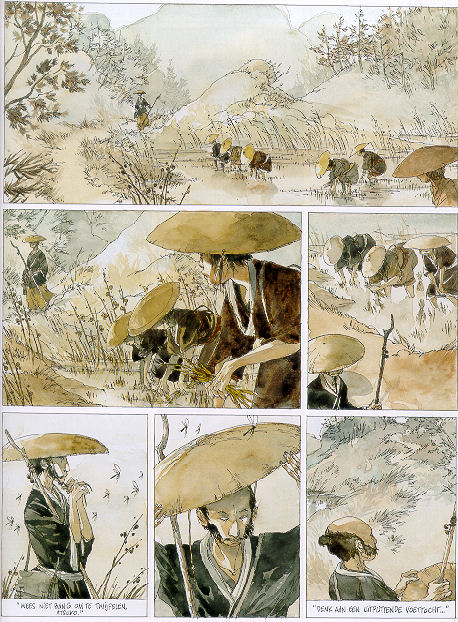 | Info: | Mogitsu, een rondreizend kalligraaf ontmoet Atsuko, een jong meisje, haast nog een kind, in wie de man schildert talent meent te ontdekken. Hij besluit haar mee te nemen naar Edo om haar daar een opleiding te laten volgen. Onderweg groeit er een hechte vriendschapsband tussen Atsuko en Mohitsu. Het jonge, spontane en soms brutale meisje zal Mohitsu de kracht geven om zijn verleden te verwerken en inspiratie te vinden voor de toekomst. "De inkt van toen" is een verhaal over vriendschap en lering waarin de leerling mondjesmaat aan de meester biedt wat de meester vreesde zelf niet meer te kunnen geven. Met een erg intimistisch initiatie verhaal van Antoine Bauza levert Maël erg open en verademende tekeningen in direct colour. Het samenvloeien van tekst en tekeningen zorgt voor een kolkende emotie. |