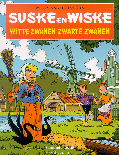 | Info: | In 1887 werd de Nederlandse supermarktketen Albert Heijn in Oostzaan opgericht. Ter gelegenheid van het honderdjarig bestaan van Albert Heijn werd in 1987 het Suske en Wiske-album Witte Zwanen, zwarte zwanen gerealiseerd. Voor deze uitgave (2010) heeft Eugeen Goossens, de tekenaar van het oorspronkelijke verhaal, een nieuwe covertekening ontworpen. Naast deze versie bestaat er ook een luxe-editie in beperkte, genummerde oplage. |