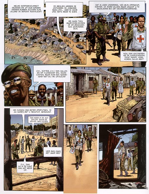 | Info: | Vera heeft verscheidene maanden doorgebracht in Afrika als verpleegkundige voor het rode kruis. Haar werkgebied was gelegen in de streek van de grote meren. Tijdens haar werkzaamheden hoort Vera dat haar vader, de zigeunerviolist Jakob Mikaïlov, is overleden. Compleet uitgeput wordt Vera gedwongen terug te keren naar Parijs. Op het moment dat ze daar het graf van haar vader bezoekt komt ze in contact met een aantal zigeuners die haar vader hebben gekend. Vera bezoekt ze later in het zigeunerkamp en komt zo te weten dat ze nog een tweelingbroer heeft die Kolya heet. Jacob is vroeger naar Frankrijk gekomen om zijn inkomen te kunnen verdienen met zijn vioolspel. Daarbij heeft hij zijn dochter wel meegenomen, maar zijn zoon Kolya achtergelaten. Als Vera de spullen van Jacob uitzoekt stuit ze op een brief die 8 jaar daarvoor gestuurd is uit Polynesië. In die brief kondigd een zekere Jean-Rene Isnard een bezoek van Kolya aan Europa aan. Vera realiseert zich dat haar vader dus geweten heeft dat Kolya nog in leven was! Onmiddelijk besluit Vera het vliegtuig te nemen en op zoek te gaan naar haar tweelingbroer waarvan ze tot voor kort niet eens wist dat hij bestond... Door: Christian Perrissin (tekst) / Boro Pavlovic (tekeningen) Prijs: € 7,50 |