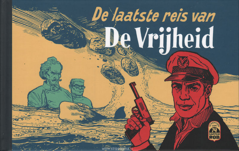| Info: | Een echte zeeman houdt het niet lang vol aan de wal, dus het is niet zo heel vreemd dat Kapitein Rob 75 jaar na de verschijning van het eerste avontuur in Het Parool weer met 'De Vrijheid' richting de horizon vaart, in gezelschap aan zijn onafscheidelijke metgezel Skip. Journalist en schrijver Frank von Hebel (46) een kunstenaar Fred de Heij (60) tekende - letterlijk en figuurlijk - voor De laatste reis van De Vrijheid, het gloednieuwe avontuur van Kapitein Rob. Von Hebel schreef het scenario en De Heij stortte zich op de personages van zijn jeugdheld Pieter Kuhn. Professor Lupardi ontwaakt uit een lange kunstmatige slaap en zet een boosaardig plan in werking. Hij heeft echter buiten Kapitein Rob gerekend, die met een tijdmachine de geleerde probeert tegen te houden. Rob krijgt daarbij onder meer hulp van... zichzelf. Rob voelt zich alsof hij uit elkaar wordt getrild. Concentreer je, het duurt maar even. Hij valt voorover, alsof alle spieren in zijn lijf in gelei zijn veranderd. Zijn handen branden zich aan hete steen en hij trekt ze snel omhoog. Prudon ligt op zijn rug en kijkt verdwaasd naar de lucht. Rob richt zich op, zijn knieën kraken. Een krachtige hand tilt hem omhoog. 'Waar komen jullie in hemelsnaam vandaan?' Die stem. Rob opent zijn ogen. Hij wist het en toch gelooft hij het niet. Daar staat hij. |