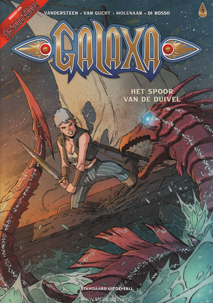 | Info: | Omdat er een prijs op haar hoofd staat, is Galaxa verplicht naar het buitenland te vluchten. Maar het enige veilige land ligt ver over zee en de bootreis daarheen is vol gevaar. Uiteindelijk is er maar één schipper bereid hen over te zetten. Helaas gaat het vreselijk mis en vallen ze in handen voor een nietsontziende vijand. Alles lijkt verloren tot Galaxa hulp krijgt uit onverwachte hoek. |