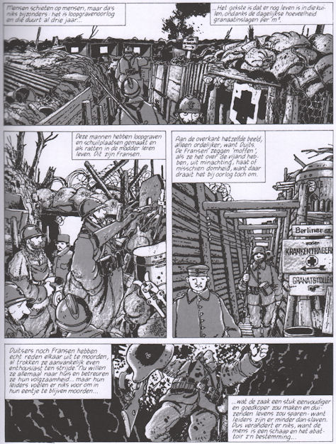 | Info: | Granaten scheurden de gemartelde grond kopen, waarin duizenden mannen zich schuilhielden die zich hadden ingegraven en schuilplaatsen voor zichzelf hadden gemaakt. |