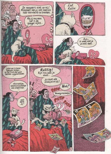 | Info: | Wat moet blijven bij lichte ongerustheid slaat bij de hoofdpersoon al snel om in een Nabokoviaanse obsessie. In zijn psychotische toestand ervaart de Humbert Humbert van Bubblegum Geisha haar afwezigheid als extreem alarmerend. Om zijn lieveling terug te vinden gaat hij tot het uiterste en trotseert hij zijn diepste angsten. Met moddervette knipogen naar Alice in Wonderland, Poor Things, Hokusai, Araki en Lolita wordt de lezer via deze hallucinante achtbaanrit meegevoerd naar alle uithoeken van de wereld. Bubblegum Geisha is een order aan de underground strip zoals we die kennen van Robert Crumb en Eric Schreurs, waarbij niets geschuwd wordt. Associatief, ongecensureerd, erotisch, pervers, ruig en bloedmooi. Bubblegum Geisha is een tour de force, een caleidoscopische Odyssee, tomeloos en bandeloos die de lezer verbluft zal achterlaten. |