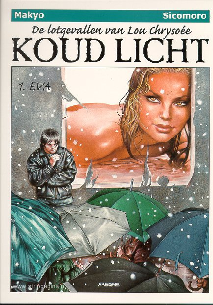 | Info: | Door een bijna bovennatuurlijke aantrekkingskracht is de carrière van actrice Eva Gello vanaf het begin uiterst soepel verlopen. In het theater heeft ze het ene succes na het andere en als gevolg daarvan krijgt ze ook interessante filmaanbiedingen. Binnen een paar jaar is ze beroemd en praat iedereen over haar. Maar ze raakt vergiftigd door de roem, de rijkdom en de gemakkelijke liefde. Dan ontmoet ze een drietal vrienden, die al sinds hun tienerjaren met elkaar optrekken en de filosofie huldigen dat ‘al wat ons verenigt altijd sterker is dan wat ons scheidt'. Voor de mannen, die alle drie verliefd worden op de mooie Eva, is dit de zwaarste test van hun verbond. Het lijkt erop of wat hen scheidt het gaat winnen van wat hen verbindt... Makyo (1952) boekt in 1982 al vrij veel succes met Jerome K. Jerome Bloks, getekend door Dodier, maar zijn echte doorbraak wordt Het land van Langvergeten, een fantasyreeks die achtereenvolgend getekend wordt door Vicomte, Hérenguel en Faure. Met die laatste maakt hij ook de trilogie Elsa. Van de hand van Makyo is ook de door Sicomoro getekende nieuwe serie Koud Licht, die eveneens bij uitgeverij Arboris verschijnt. Eugenio Sicomoro (1952) heeft in Italië en Frankrijk al een groot aantal succesvolle albums op zijn naam staan, maar in het Nederlands kennen we hem alleen maar van het album De Scharlaken Mummie (Dargaud, 1987). Hij werkt voor deze serie in een vrij klassieke stijl, die aangevuld wordt door prachtige inkleuringen van Cristiano Spadoni en Sicomoro zelf. Door: Pierre Makyo (tekst) / Eugenio Sicomoro (tekeningen) Prijs: € 6,95 |