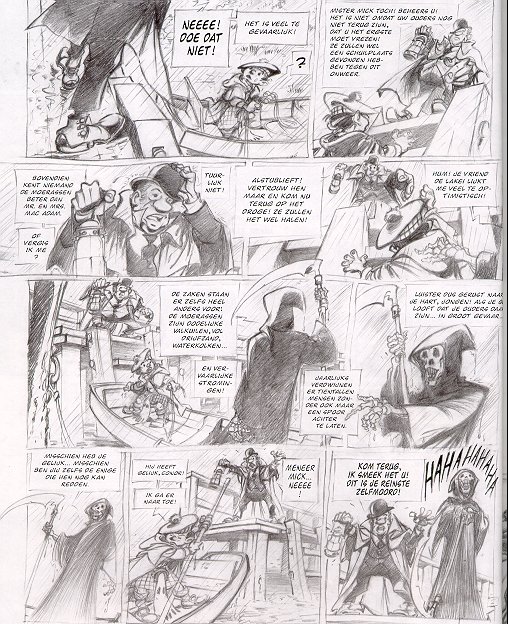 | Info: | Mick Mac Adam keert per trein terug naar zijn geboortestad Hillkirk. In de naburige moerassen heeft men twee lichamen gevonden, waarvan men denkt dat het zijn ouders zijn. Zij kwamen om het leven tijdens een poging om het bewijs te leveren van het bestaan van heksen... Een hernieuwde kennismaking met een zeer geliefd personage. Een hallucinerende reis naar het hart van Schotland, het land van legenden, spoken en bovennatuurlijke wezens. Een stortvloed van mysterieuze gebeurtenissen, vol spanning en avontuur. Wat zou je doen als je na achttien jaar het antwoord vindt op die éne vraag die je sinds je jeugd almaardoor is blijven achtervolgen? Zou je na al die tijd terugkeren naar de plaats waar alles begon? Of sluit je gewoon de ogen, hopend dat het maar een nachtmerrie was, een kwade droom die verdwijnt bij het rijzen van de zon?... Was Mick Mac Adam maar niet ingegaan op dat vreemde telegram... Een telegram dat hem in allerijl de trein deed nemen naar dat onooglijke dorpje in de Schotse Hooglanden. Had hij toe geweten wat hem daar allemaal te wachten stond, hij was waarschijnlijk nooit uit Londen vertrokken... De onthoofde minnaars is een nagelnieuw avontuur van Mick Mac Adam, waarin de vertrouwde ingrediënten uit de vroegere albums -zoals mystiek en humor- zeker niet ontbreken. Dit spannende verhaal is het eerste deel van een tweeluik, waarin de Schotse detective na achttien jaar terugkeert naar zijn geboorteland. De onthoofde minnaars is meer dan zo maar een stripverhaal. Het is het eerste album uit de greyline collectie, een nieuwe unieke reeks, waarin het werk van auteurs op een artistieke manier benaderd wordt. Zo bevat deze editie van De onthoofde minnaars een album dat volledig in potlood is uitgewerkt én een schetsboek met meer dan twintig pagina's aan voorbereidende studies en ander schetsmateriaal. |