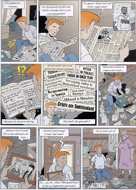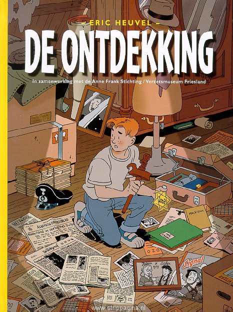 | Info: | Een stripverhaal waarin de Tweede Wereldoorlog centraal staat. Speciaal geschreven en getekend voor kinderen. Geproduceerd onder regie van de Anne Frank Stichting te Amsterdam die tevens verantwoordelijk is voor een speciale editie voor de basisscholen. De ontdekking is geen geschiedenisles, maar een spannend verhaal over de gebeurtenissen die tijdens de Duitse bezetting plaatsvonden. Jeroen zoekt bij zijn oma op zolder naar spullen voor de vrijmarkt op koninginnedag. Tussen alle rommel vindt hij de oorlogsplakboeken van zijn grootmoeder. Hij ontdekt dat er tijdens de Tweede Wereldoorlog in zijn familie dingen zijn gebeurd waarover altijd gezwegen is. Als Jeroen daarna op 4 mei de dodenherdenking meemaakt, doet hij een schokkende ontdekking. De ontdekking is een uniek stripverhaal, geschreven en getekend door de bekende Nederlandse stripmaker Eric Heuvel die eerder albums publiceerde rond de vrouwlijke piloot "January Jones". Voor het Algemeen Dagblad maakte hij de strip "Bud Broadway" en tegenwoordig is hij met een verstripte versie van "Toen was geluk nog heel gewoon" te vinden in de televisiemagazines Studio en Mikro Gids. De ontdekking is stevig uitgevoerd (harde kaft) en full colour gedrukt. De uitgave telt 56 pagina's. Door: Eric Heuvel Prijs: € 8,95 EAN 8711854003261 |