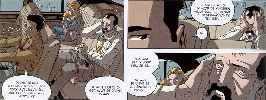|  Al’Togo  1 : 297 KM Sver is wanhopig!Hij mag zijn kinderen niet meer zien heeft de rechter besloten. Maar hij moet en zal ze zien,wat dat dan ook mag kosten.En de prijs is hoog , zo hoog dat hij op de vlucht moet met zijn twee dochters.Maar hij is niet alleen een vader,hij is ook een minister.En dan vlucht je niet meer zo makkelijk.De lange tocht is begonnen. Al is op weg naar zijn nieuwe baan als hij vreemde dingen ziet gebeuren bij het tankstation en zet de achtervolging in.Zijn baan is nu begonnen.Zijn baan als het nieuwe teamlid bij EO-6.(Euro Operations nr.6) Het is een aardig spannend verhaal met alle mogelijke emoties erin.Het is een beetje een voorspelbaar verhaal maar in dit geval niet vervelend.Het laat ook van iedereen zijn of haar verhaal zien,niet alleen van de vader dus. De tekeningen zijn niet echt schitterend maar wel duidelijk. Maar aan de andere kant hebben ze wel weer heel erg op de details gelet, want die zijn er wel allemaal. Al met al, weer een leuke strip erbij. Auteur: JD Morvan Tekeningen: S Savoia |