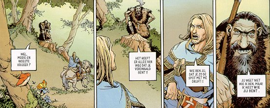 |  Arthur - deel 1: Myrddin de gek Myrddin de gek is het eerste deel van deze nieuwe serie Arthur. En als het aan mij ligt zeker niet het enige deel. Het speelt zich af op een eiland ergens in de middeleeuwen. Er wordt veel gevochten en bloed vergoten, maar dat gebeurde ook in die tijden. Myrddin wordt geboren en is na enkele maanden al een paar jaar ouder en binnen no-time al volwassen. Erg wijs, helderziend, geliefd en gevreesd. Hij wordt ook de eerste raadgever van de koning en staat hem bij, bij alle gevechten en oorlogen. Maar dan…. Het is een vreemd en mysterieus verhaal. Soms een beetje erg vreemd. Even dacht ik ook aan de nieuwe versie van Obelix, maar dat viel gelukkig mee. De namen van de plaatsen en mensen zijn een beetje moeilijk maar wel leesbaar hoor! Het zijn mooie, ruwe en toch duidelijke tekeningen. Al met al, weer een goede strip erbij.