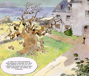 |  Boom van de twee lentes, De (Collectie Getekend) Julien, de laatste telg van de Bretonse adellijke familie gaat op zoek naar een zwaard. Omdat Julien bijna bankroet is moet hij dat kostbare zwaard van zijn voorvader vinden. Alleen het schip waarop zijn voorvader Alexandre op voer is in 1680 verdwenen. Niet gezonken maar gewoon verdwenen. Julien gaat samen met zijn trouwe butler Telesphore op pad, op zoek naar het zwaard.