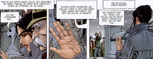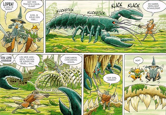 Over de tekeningen niets dan lof, ze zijn schitterend, echt waar. Stuk voor stuk zijn het schilderijtjes, maar schilderijen horen in een museum en niet in een stripboek thuis. |