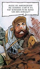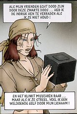 | Het Bloed van Porphyres Door de tekeningen die sober en woest aandoen maar toch op de details zijn, ben je meteen op het eiland, net of dat je mee kijkt met de personages. Instant sympathie voor Soizik, de hoofdrolspeelster. Ze probeert te overleven in een dorp waar een pastoor de scepter zwaait. Hij houdt de mensen angstig door allerlei bangmakende verhalen. Gelukkig kunnen we er nu om lachen! Ze heeft ook een vervelende aanbidder die de strijd wil aan gaan met elke man. Maar dan wordt er geworsteld met een onbekende en het verhaal begint. Verrassend verhaal met een spannend einde en ik ben zeer benieuwd naar het volgende deel. Verhaal: Balac Tekeningen: Parnotte (Datum: 08-08-2007) |
