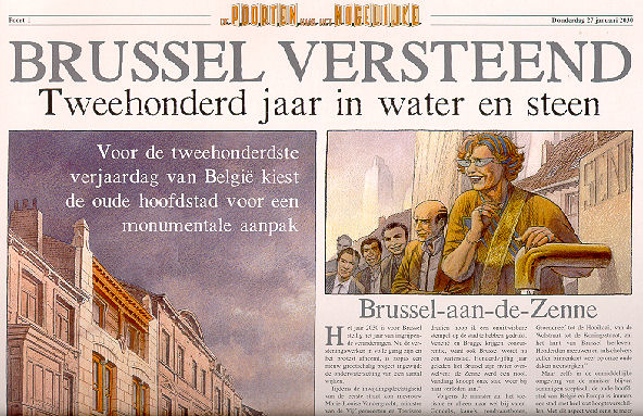 | Info: | Na de reeks "De duistere steden, waar de "toekomst van het verleden" in werd verhaald, besloten François Schuiten en Benoît Peeters een nieuwe uitdaging aan te gaan: de toekomst van onze hedendaagse wereld te dromen, een ware prospectie aan te durven, in de aard van de visies van Jules Verne en Robida. Op grote bladzijden van een denkbeeldige krant, vertekkeb Schuiten en Peeters een paar geloofwaardige of minder geloofwaardige scenario's voor de komende tientalle jaren: Een bewoonde rots, Eerbaar insect, Nomadendaken, De sorteerschool, Bloot in de trein, In de tuin der lusten... Een deels serieuze, deels geamuseerde kijk op een toekomst die misschien niet meer zo ver af ligt. |