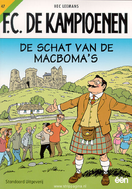 | Info: | De Kampioenen worden voor een match uitgenodigd in Schotland. Uiteraard gaat iedereen mee op dit snoepreisje. Zelfs Fernand biedt aan om zijn bestelwagen ter beschikking te stellen voor het transport van de bagage. Na de match wordt meneer Boma aangesproken door een Schotse genealoog, doctor MacSwindle, die beweert dat Boma van Schotse afstamming is. Hij zou de enige nazaat zijn van de beroemde MacBoma's, een oude Schotse clan. Het verhaal gaat dat er een familieschat bestaat, die nooit gevonden werd, maar die zou verborgen zitten in het vervallen kasteel van de clan, dat nu te koop staat. Maar is dit wel toeval? |