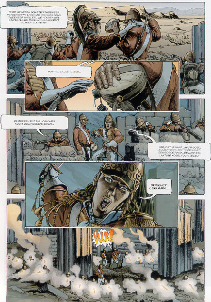 | Info: | "De kleinste dingen hebben de grootste gevolgen [...] als ik Constantinopel had bereikt en India, dan had ik de wereld veranderd!" Napoleon Bonaparte (memoires geschreven op Sint Helena) En de wereld veranderde... 1979. Het Franse leger verovert Akko in Palestina, Bonaparte trekt naar het noorden om het Ottomaanse rijk te onderwerpen en daarna Brits-Indië. 1815. Ergens tussen Benares en Calcutta. Wellington wordt de zee in gedreven. Op een smalle strook tussen de Ganges en de Himalaya wordt nog standgehouden. Daar zal Napoleon voor het eerst worden verslagen tijdens een slag die wordt geleid door een nieuwe Engelse generaal. Het gerucht gaat dat hij nooit zijn hermetisch afgesloten strijdwagen verlaat. |