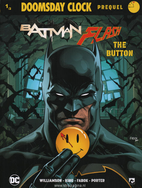 | Info: | Van wie is... de button? Een onbekende macht bemoeit zich met onze wereld. De enige aanwijzing is een met bloed besmeurde gele button. Waar komt die vandaan? En wie liet hem achter? De button is misschien het belangrijkste voorwerp in niet alleen onze wereld, maar in alle werelden... en daarom wil Reverse-Flash er een moord voor doen! Batman en Flash slaan de handen ineen, maar de 'doomsday clock' tikt. |
