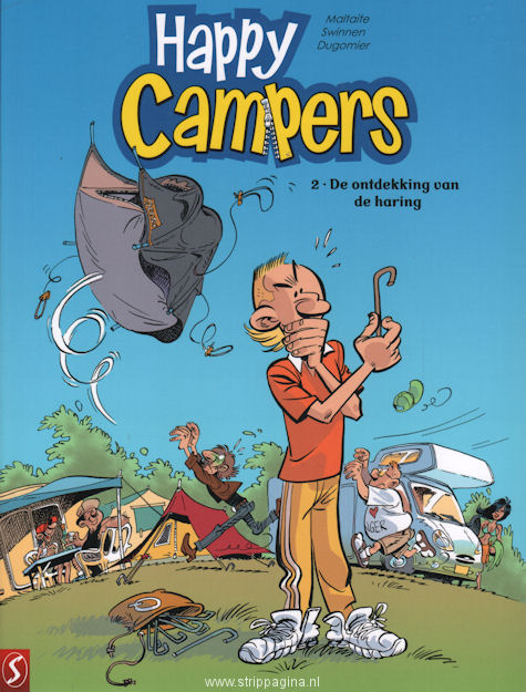 | Info: | Met Happy Campers dompel je je onder in de natuur, voel je hoe je tent bij het kleinste zuchtje wind de lucht in vliegt en proef je de spanning in de lucht na de eerste borrel... Happy Campers is het stille genieten, maar vooral de luide bulderlach! Of ze nu fan zijn van het onverslijtbare tweepersoonstentje, van de caravan met alles erop en eraan, van de quasi onbestuurbare touringcar, niets kan het enthousiasme temperen van deze moderne nomaden, zelfs niet de zeer twijfelachtige gemeenschappelijke toiletten. Ze staan te popelen om te chillen bij het zwembad en ‘s avonds een dansje te maken met buitenlandse campinggasten (en wie weet wat daaruit voortkomt). Als je voeten bij de eerste zonnestraal naar slippers verlangen, als een blaffende hond als muziek in de oren klinkt, als genieten voor jou rijmt met caravan of als jij je overal thuis voelt, zolang de zon er maar schijnt: ga dan mee op reis met de Happy Campers en haal de zomer in huis! |