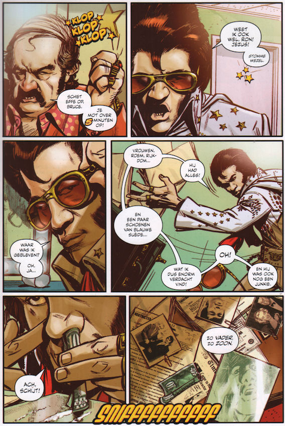 | Info: | 1977 'The King' is dood en de wereld rouwt... Wanneer een mysterieuze koffer opduikt in de kleedkamer van een opgebrande Elvis- imitator, ontspoort Bruce’ leven in één klap. Tot aan zijn oren vol cocaïne en twijfels wordt hij meegesleurd in een dodelijk web van een wraakzuchtige maffiabaas en een schimmige overheidsorganisatie met apocalyptische plannen die veel verder reiken dan de glitter van Las Vegas. Achter elke neonlamp schuilt een vijand, achter elke leugen een nieuwe waarheid. Terwijl kogels fluiten en de paranoia stijgt, probeert Bruce te achterhalen wie zijn vader werkelijk heeft vermoord. Zijn zoektocht voert hem recht in de klauwen van The Chamber, een geheime dienst die mikt op wereldheerschappij via een onstuitbaar leger robotmoordenaars, gemodelleerd naar dode beroemdheden. Rock ’n roll, complotten, explosieve actie en krankzinnige pulp: Pop Star Assassin is een wilde rit door de schaduwzijde van Amerika’s showbizz-mythe. |